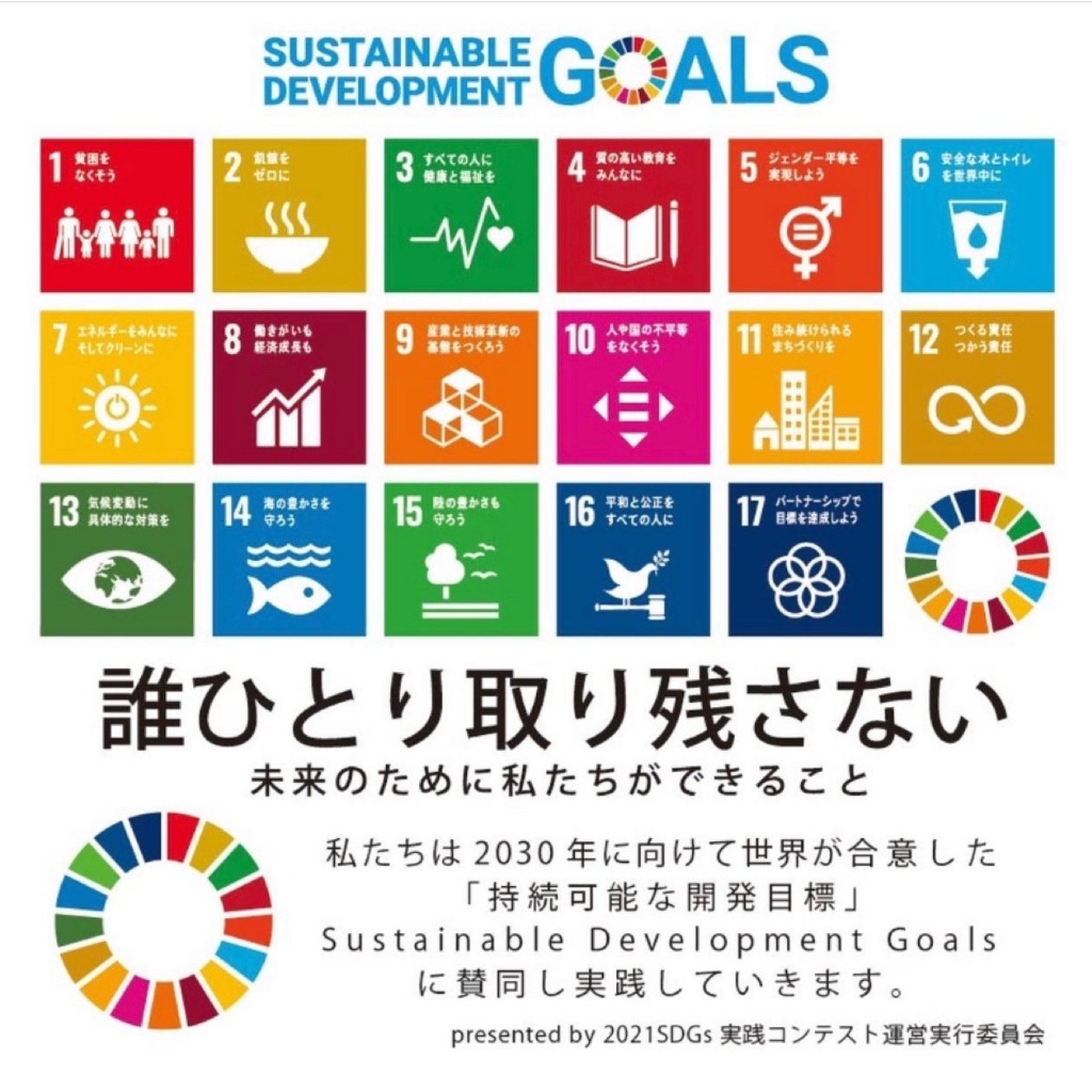 SDGsとは「持続可能な開発目標」。簡単に言うと「世界中にある環境問題・差別・貧困・人権問題といった課題を、世界のみんなで2030年までに解決していこう」という計画・目標のことです。17のひとつひとの目標に向かい積極的に取り組んでおります。